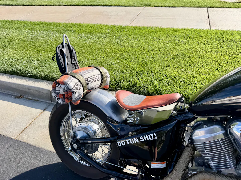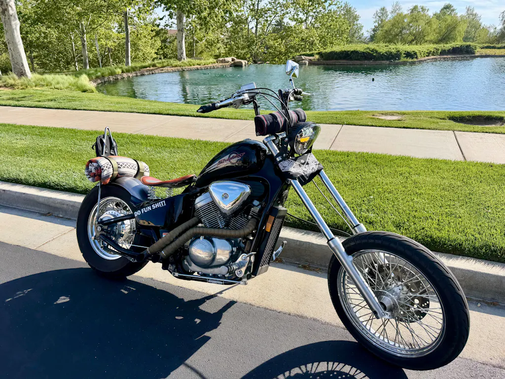 The easiest way to set these up on a Honda Shadow VT600 that has been hard tailed: Lay a length of bike chain down the center of your tire to set fender height. You can use angle brackets welded to the swing arm or our Pressio fender mounting kit. Drill holes in fender to bolt fender to angle brackets or Pressio kit. Drill 5/16' hole in axle plate. Tap with 3/8-16" tap. Bullet bungs get welded to top of struts and countersunk bungs get welded to bottom of the struts (cut struts to desired length). Cap head bolt goes into countersunk bung into axle plate and bullet bung gets bolted to fender from inside fender.